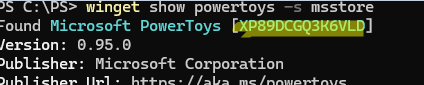 Приложения из Microsoft Store можно устанавливать и удалять по их App ID. Например, чтобы узнать App ID PowerToys, выполните команду: